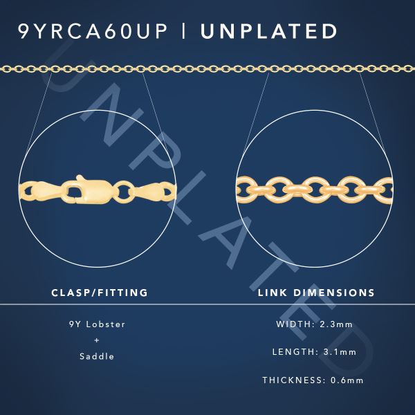 Our 9ct Yellow Gold Cable Chain is the perfect balance of style and substance. Not too chunky, yet not too light, this chain is designed to complement your Crawford Equestrian Jewelry pendants with elegance and durability. Crafted in solid 9ct yellow gold, it offers timeless sophistication for everyday wear or special occasions.