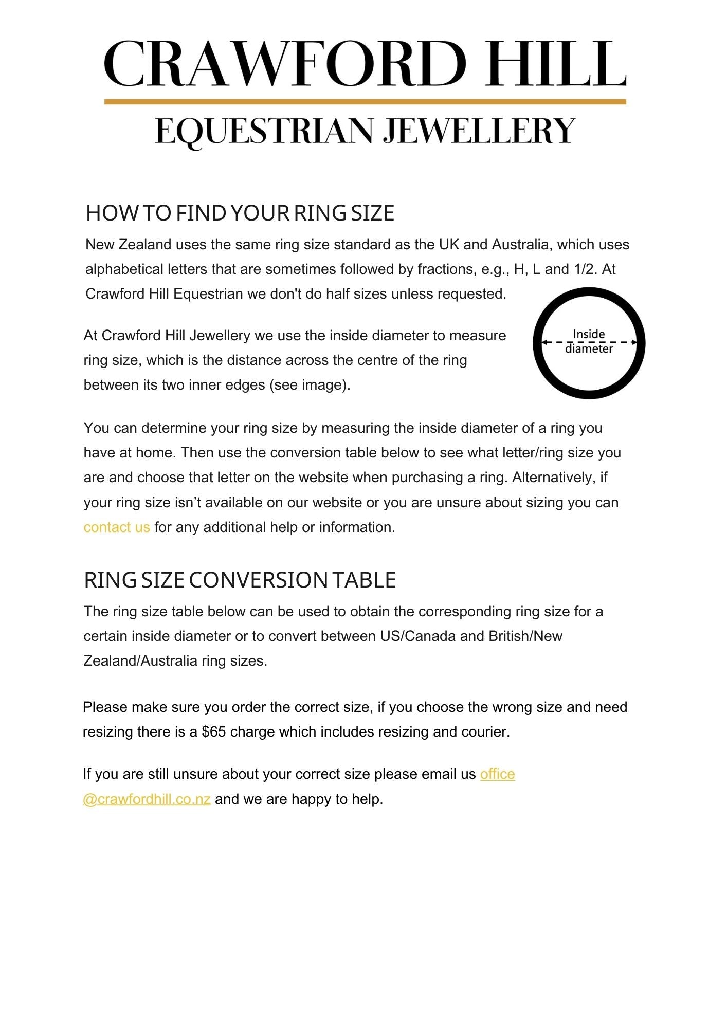 Your Crawford Equestrian Jewelry ring is crafted for a lifetime of wear. To maintain its brilliance: