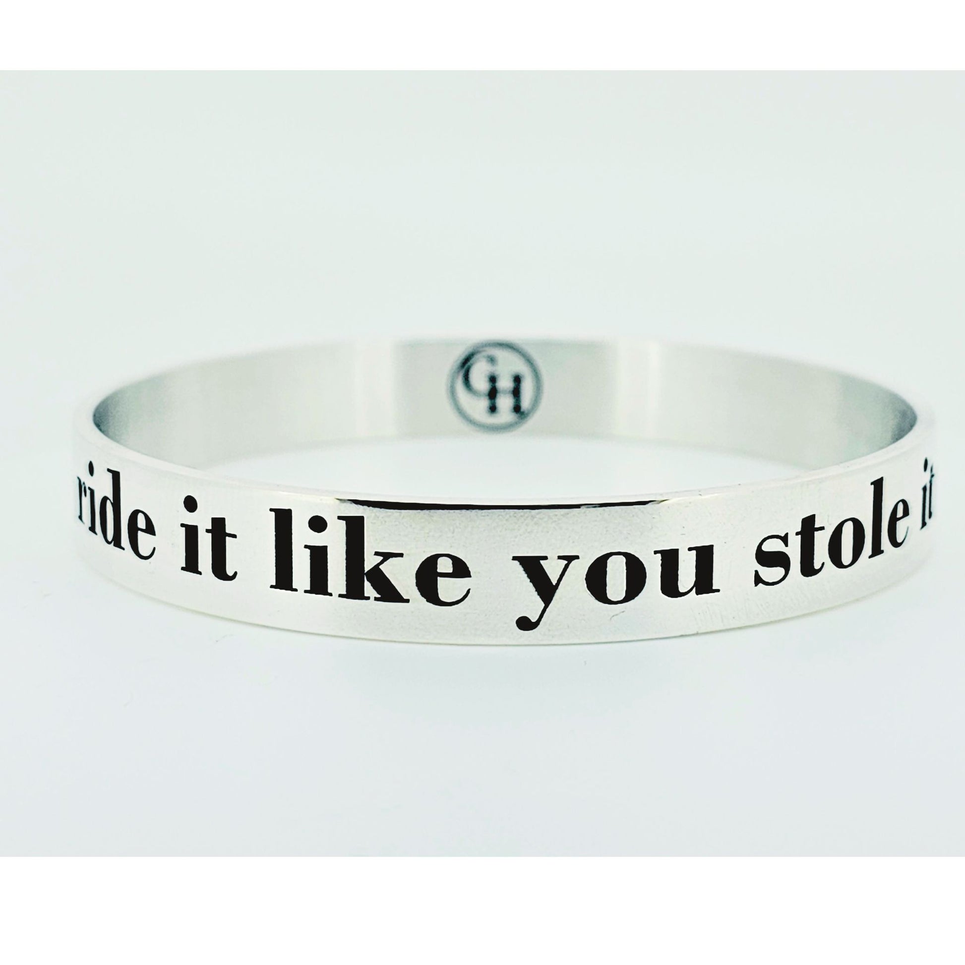 The Crawford Equestrian Jewelry “Ride It Like You Stole It” Bangle is a bold statement of equestrian grit, engraved with our most audacious mantra for riders who live with courage, focus, and resolve. This isn’t just jewelry — it’s your mindset, made wearable.